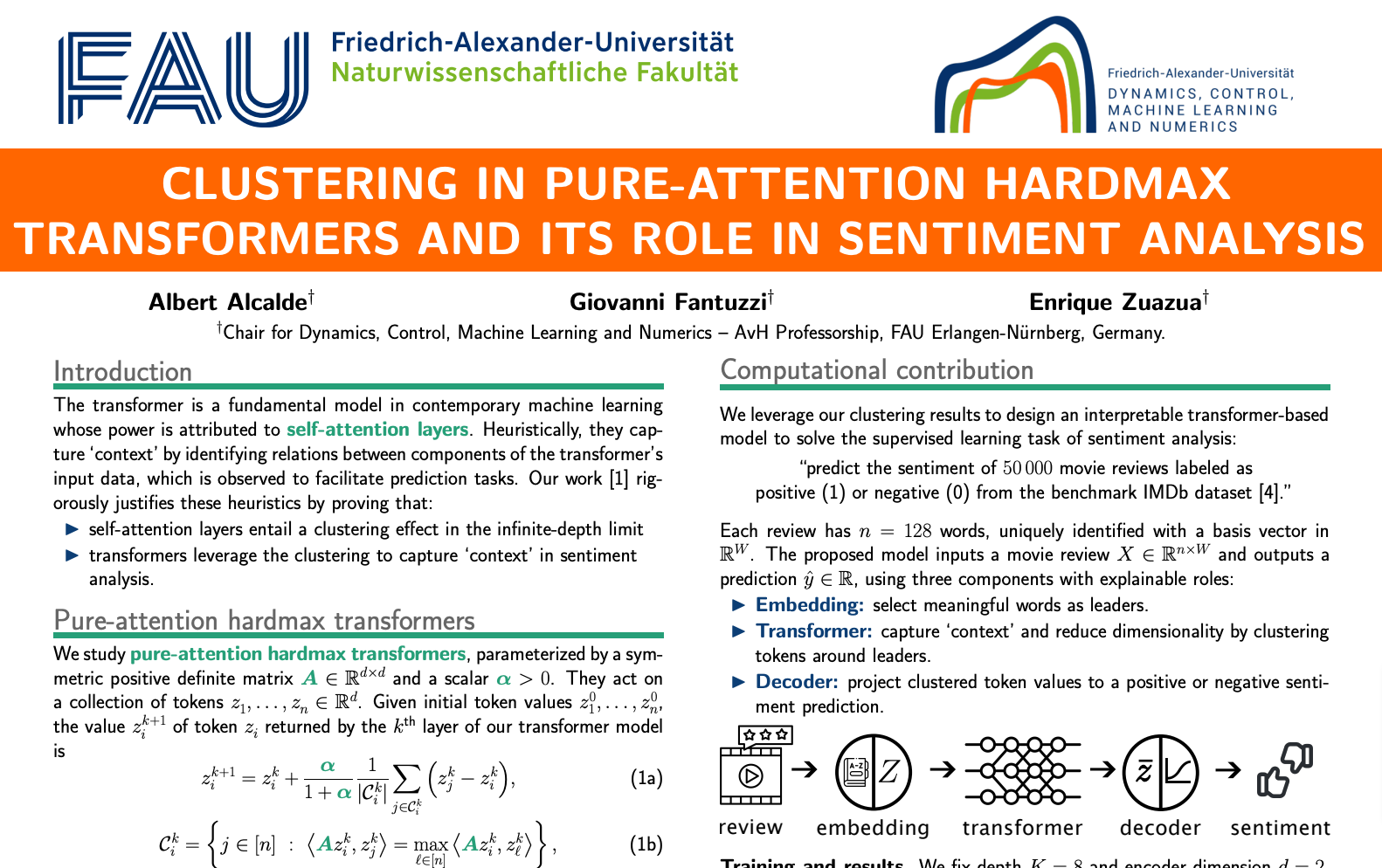 Poster: Clustering in Pure-attention Hardmax Transformers and Its Role in Sentiment Analysis