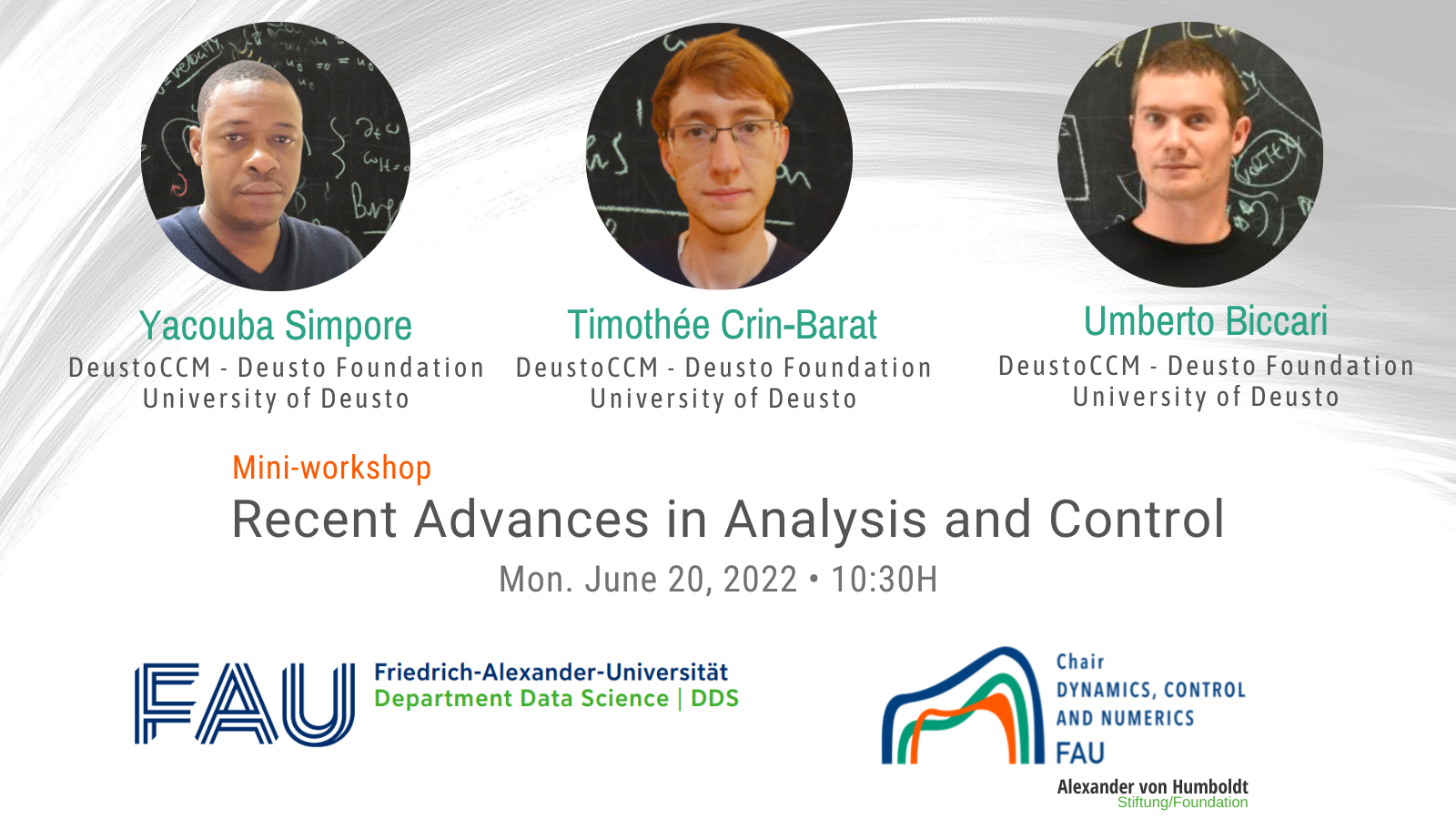 I’m a visiting at FAU DCN-AvH, the Chair for Dynamics, Control, Machine Learning and Numerics – Alexander von Humboldt Professorship within the Senior Visitor Program led by Prof. Enrique Zuazua at Friedrich-Alexander-Universität Erlangen-Nürnberg, Bavaria (Germany).